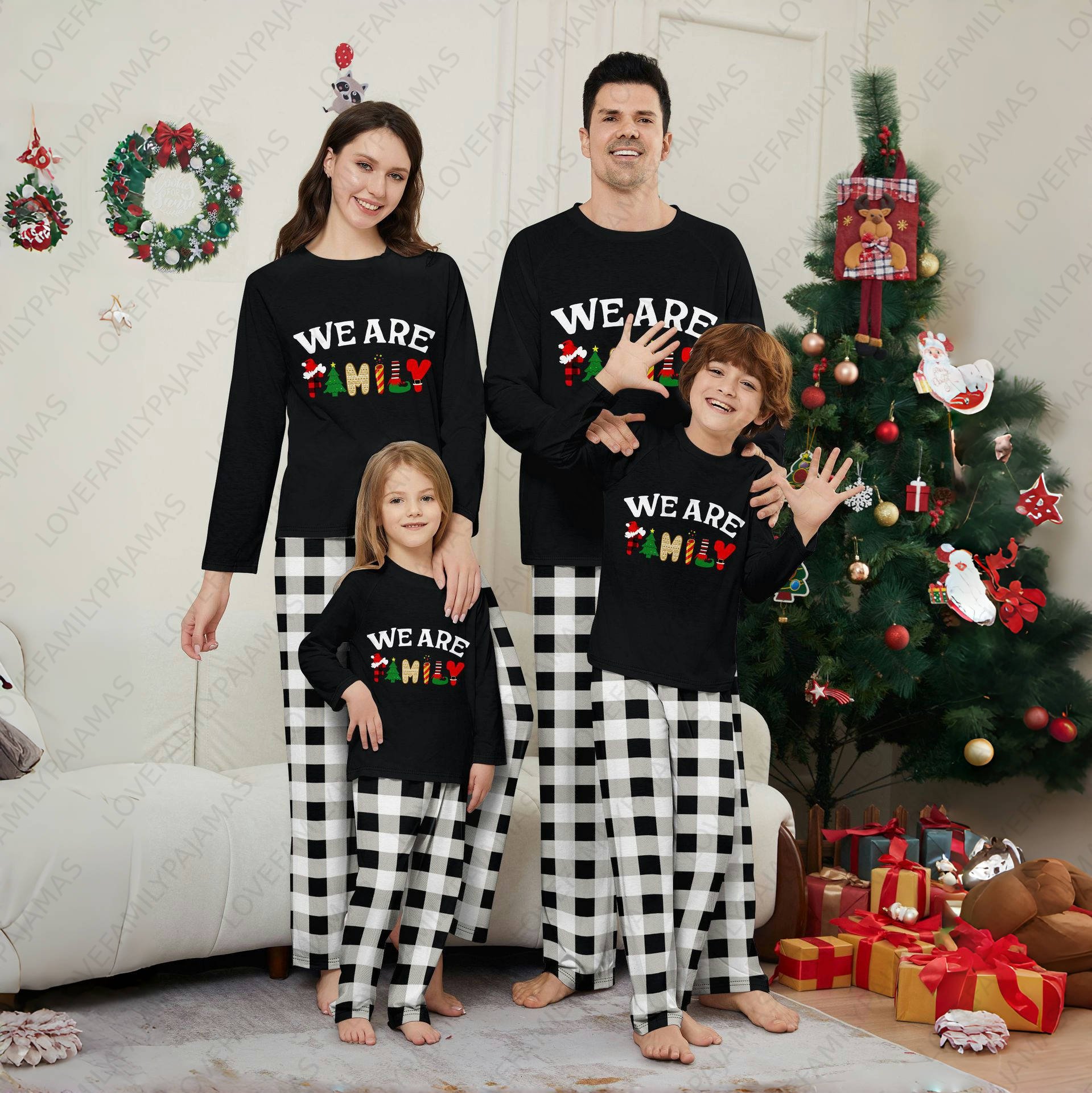 We Are Family White& Black Plaid Long Sleeve Christmas Pajamas Sets