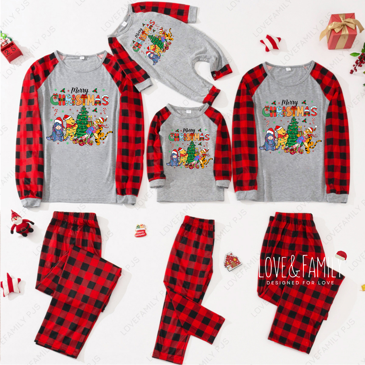 Winnie-the-Pooh Merry Christmas Classic Plaid Matching Family Pajamas