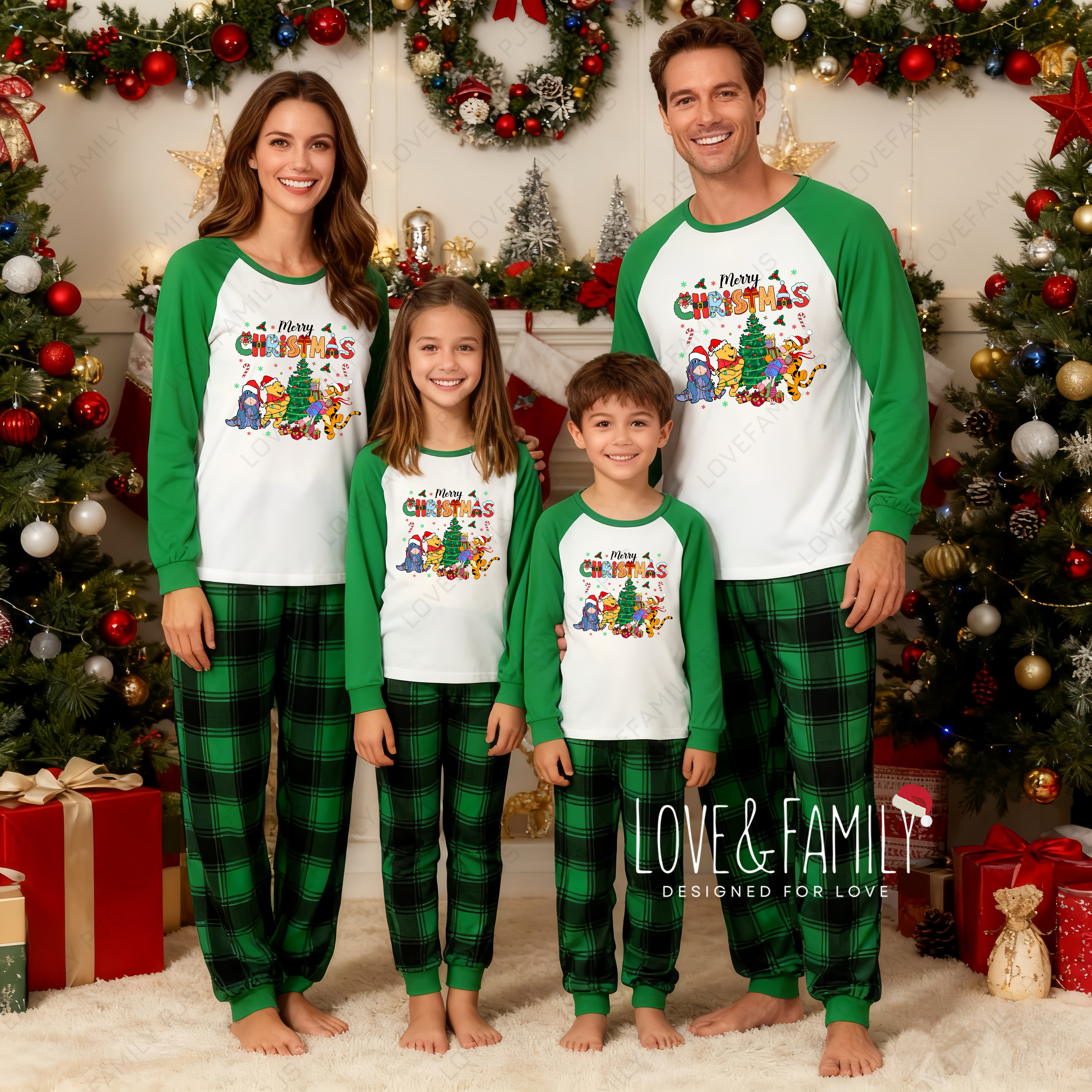 Winnie-the-Pooh Merry Christmas Green Family Pajamas