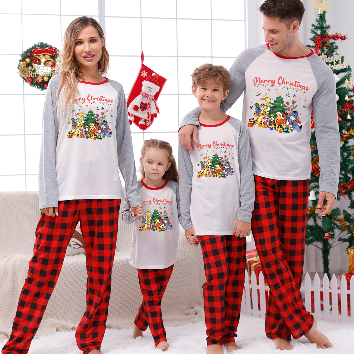 Winnie-the-Pooh Merry Xmas Red Plaid Family Matching Pajamas
