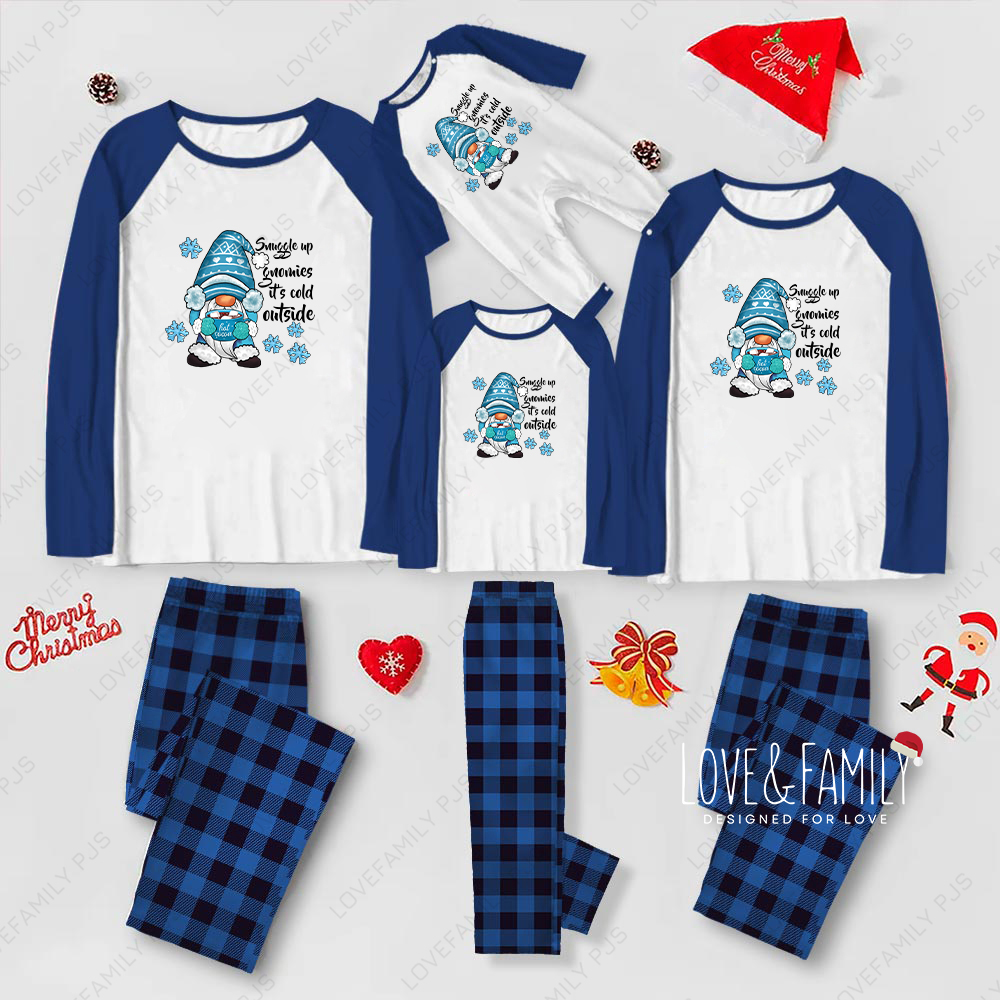 Winter Gnomes Christmas Family Matching Pajamas Blue Plaid Sets