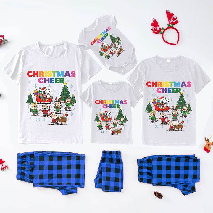 Xmas Cheer Colorful Print Holiday Sleepwear Set Peanuts Family Pajamas